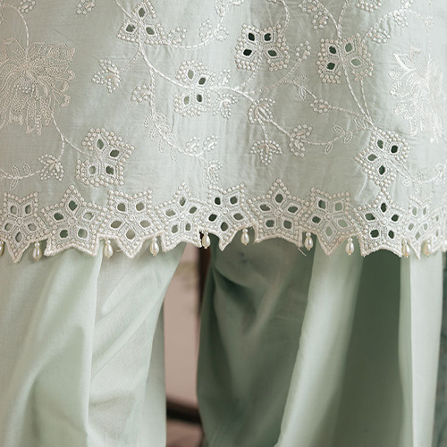 The daman, or hemline, completes the elegance of our chikankari pieces. Every daman design in our chikankari tops wholesale USA collection is thoughtfully finished to ensure perfection in every piece.