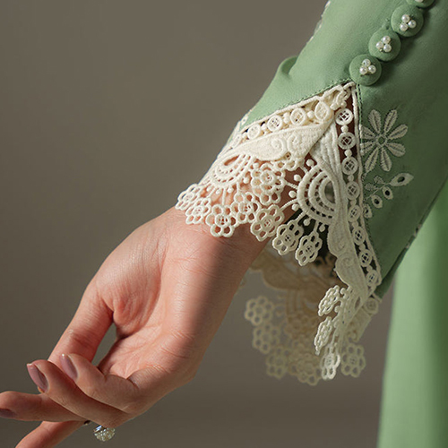 - Lace-Detail Necklines – Soft, feminine, and perfect for festive collections.